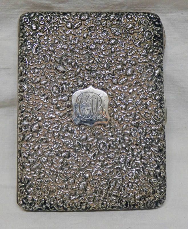 Silver floral decorated aide memoire with leather interior birmingham 1898 - 10 cm