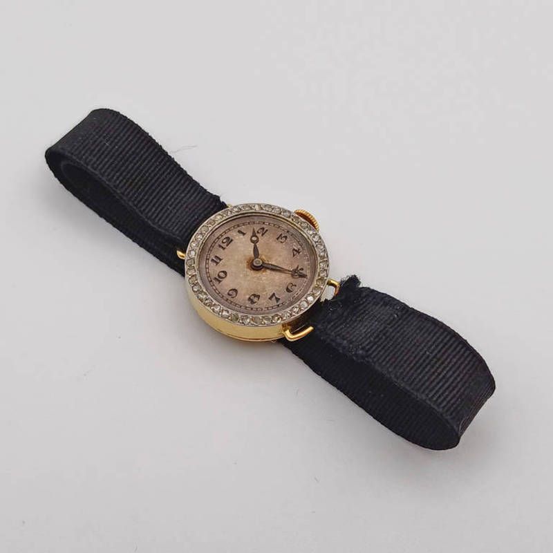 French 18ct gold & diamond ladies wristwatch with ribbon bracelet - 12.8 g