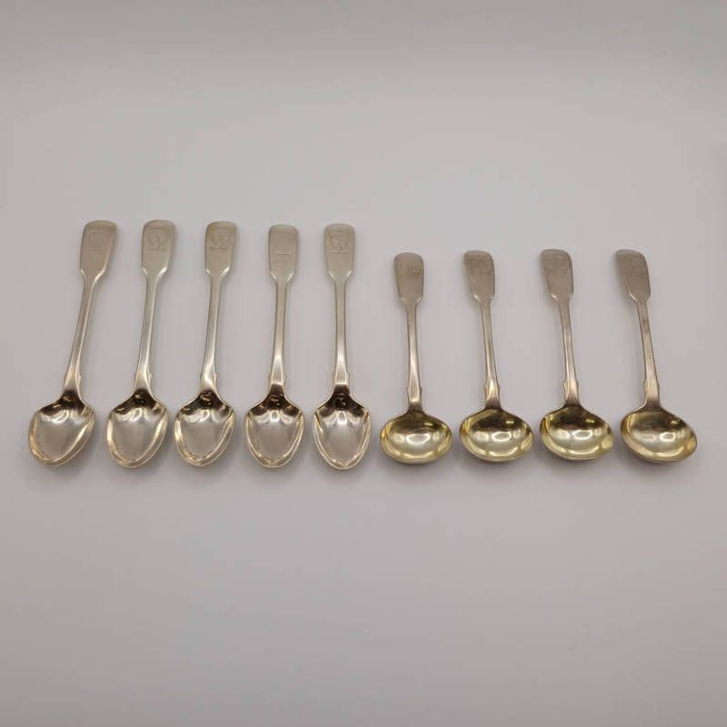 8 silver salt spoons to include a set of 4 by wb, london 1831 & a set of 5 by josiah & george piercy, london 1816. 148g