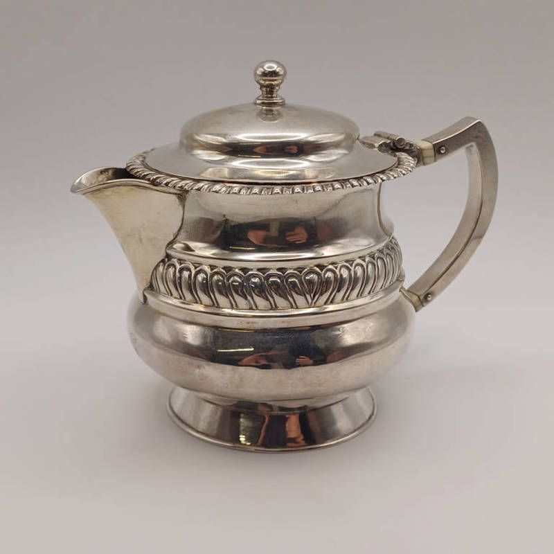 A silver cream jug with embossed floral decoration & gadrooned border by henry williamson ltd,...