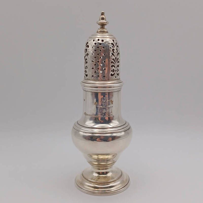 A george ii silver sugar caster by samuel wood, london 1749, 14cm, 138g