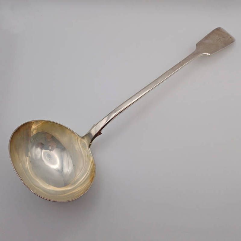 A victorian silver fiddle pattern soup ladle by elizabeth & john eaton, london 1863, 258g