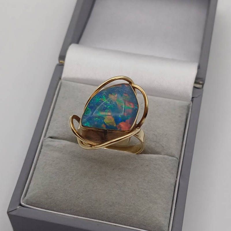 9ct gold opal triplet dress ring with openwork mount - 5.8 g, ring size m 1/2