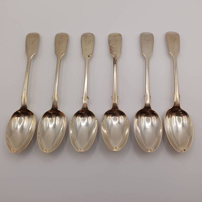 A set of 6 victorian silver fiddle pattern teaspoons by william george jamieson, aberdeen with hallmarks for london 1880. 120g