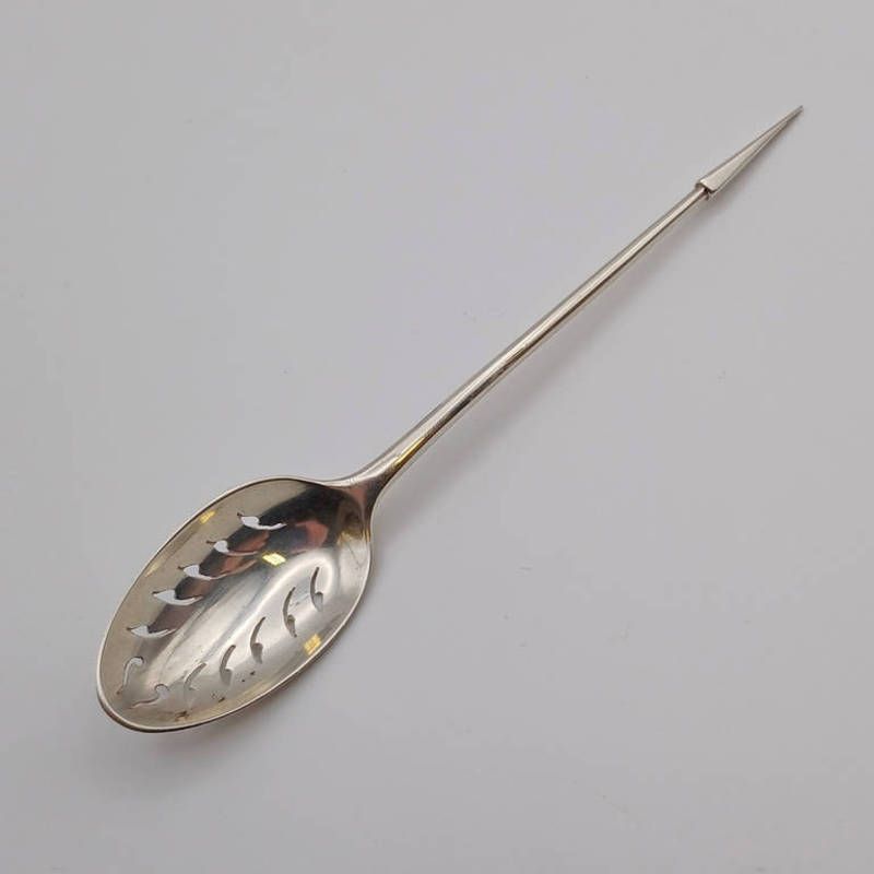 An 18th century silver mote spoon with decorative pierced bowl, marked either w.i or i.m