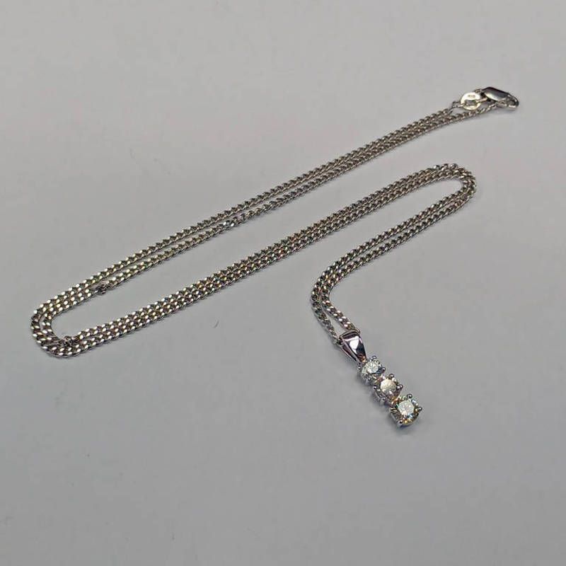 18ct gold diamond 3-stone pendant, the brilliant cut diamonds approx 1.0 carats in total on an 18ct gold chain - 5.5 g