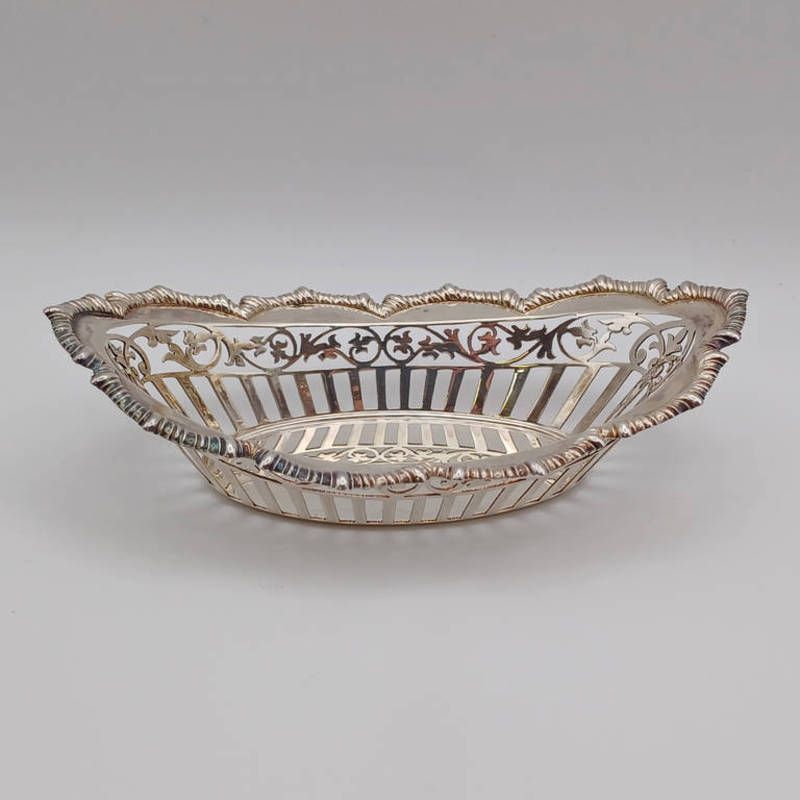 A silver sweetmeat dish with pierced decoration & gadrooned border by james dixon & sons ltd, sheffield 1903, 15cm long, 92g
