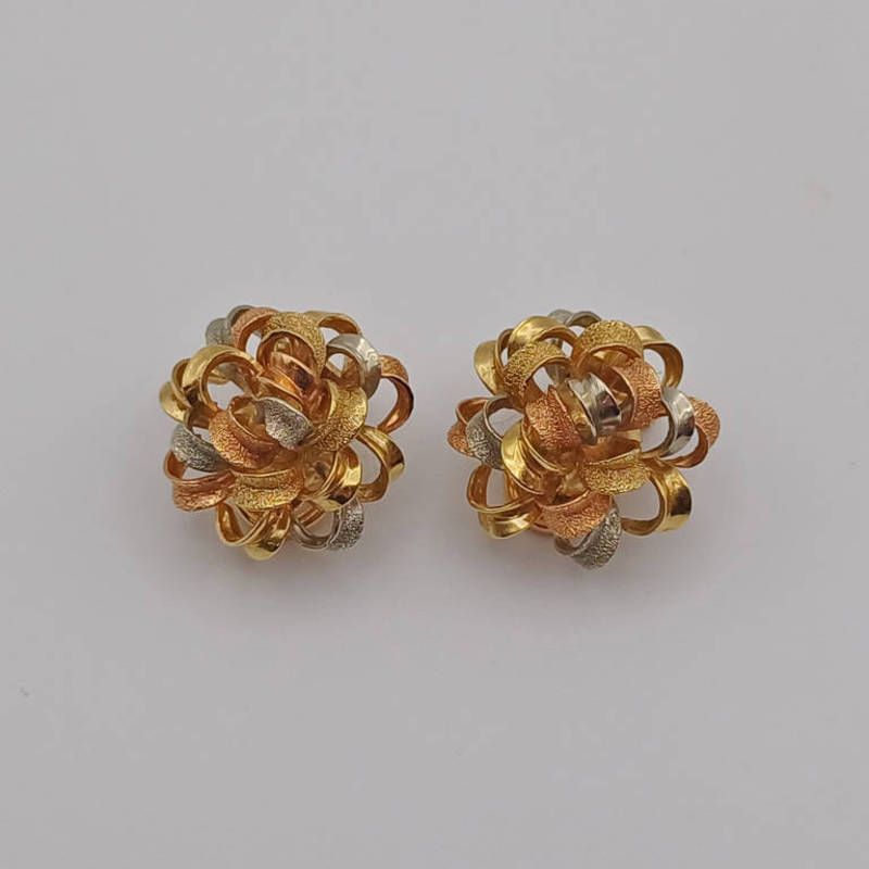 Pair of 18k gold 3-tone ribbon ear clips - 11.1 g