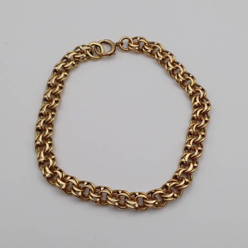 14k gold flatlink bracelet - 19cm long, 12.7 g