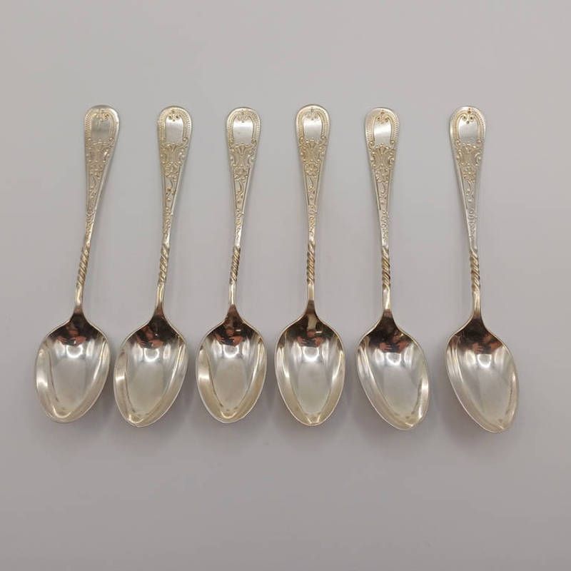 A set of 6 victorian coffee spoons with twisted & engraved handles by james deakin & sons, sheffield 1896. 70 g