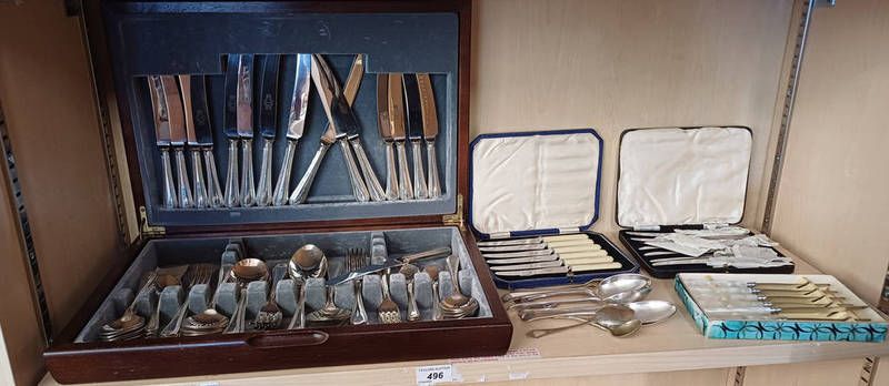 Silver plated canteen of cutlery & various other cutlery on 1 shelf