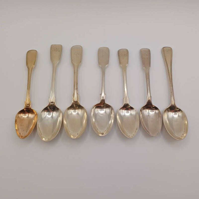 Selection of georgian & victorian teaspoons from various makers & dates including a gilded example by william seaman, london 1809. 152 g