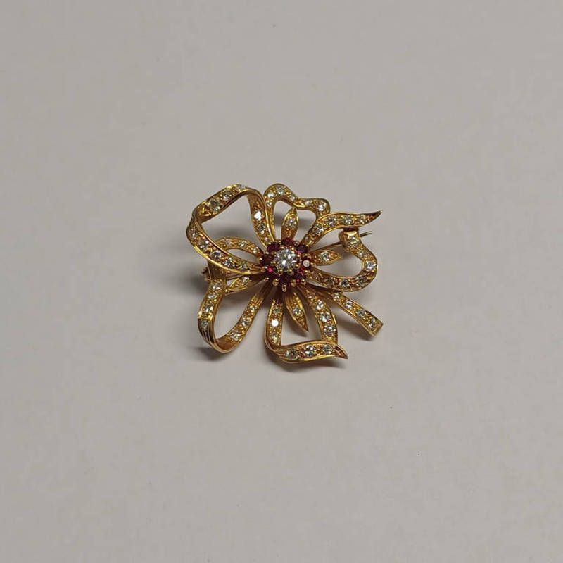 Ruby & diamond set floral brooch with a central cluster of diamonds & rubies set...