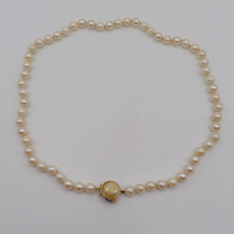 Cultured pearl necklace a 9ct gold pearl & diamond set clasp - 45cm long