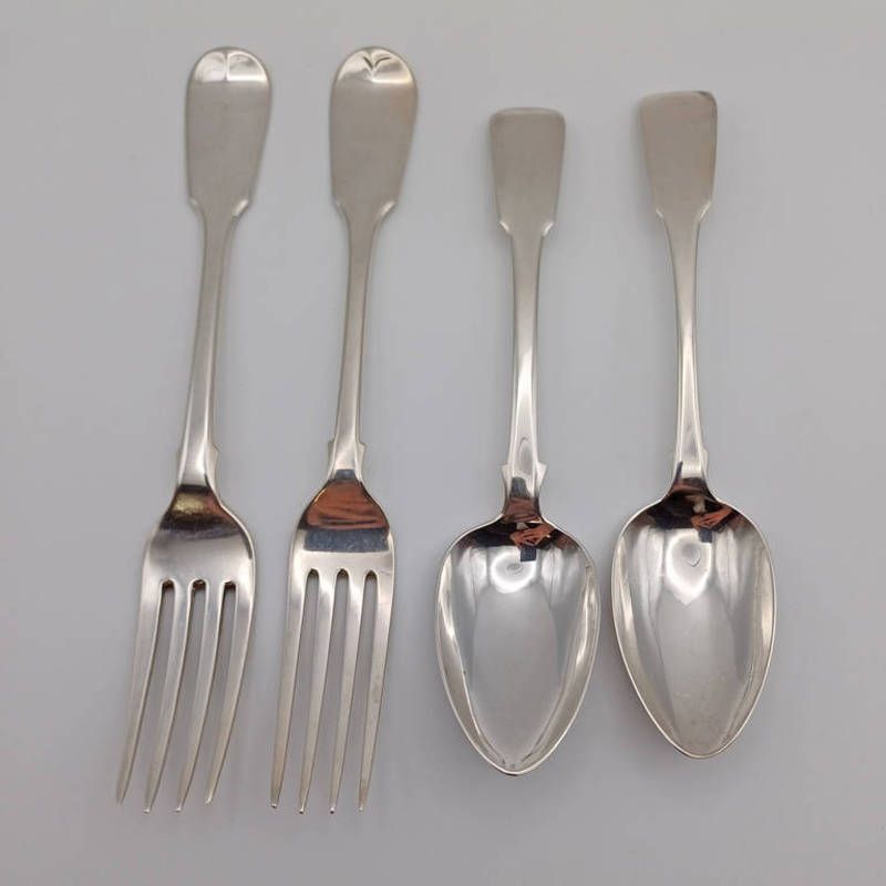 2 georgian silver dessert forks & 2 georgian silver dessert spoons including 1 irish example by james scott, dublin 1818, 201g