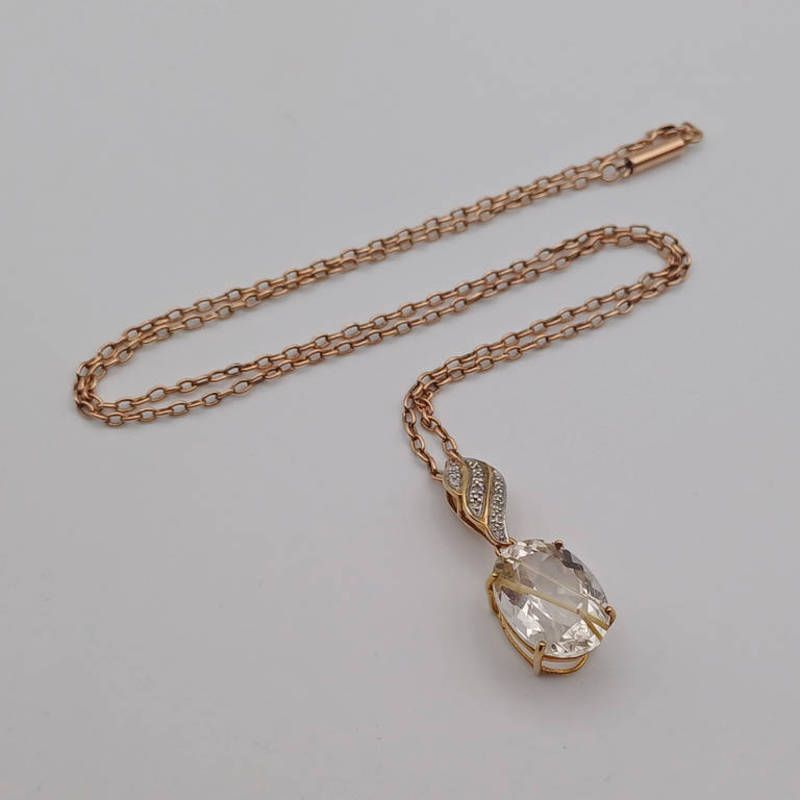 9ct gold gem set pendant on a 9ct gold chain with barrel clasp - chain 4.0 g, total weight -7.7 g