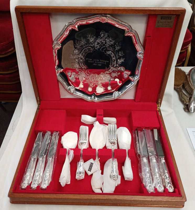 Viners kings court silver jubilee silver plated canteen of cutlery in teak case