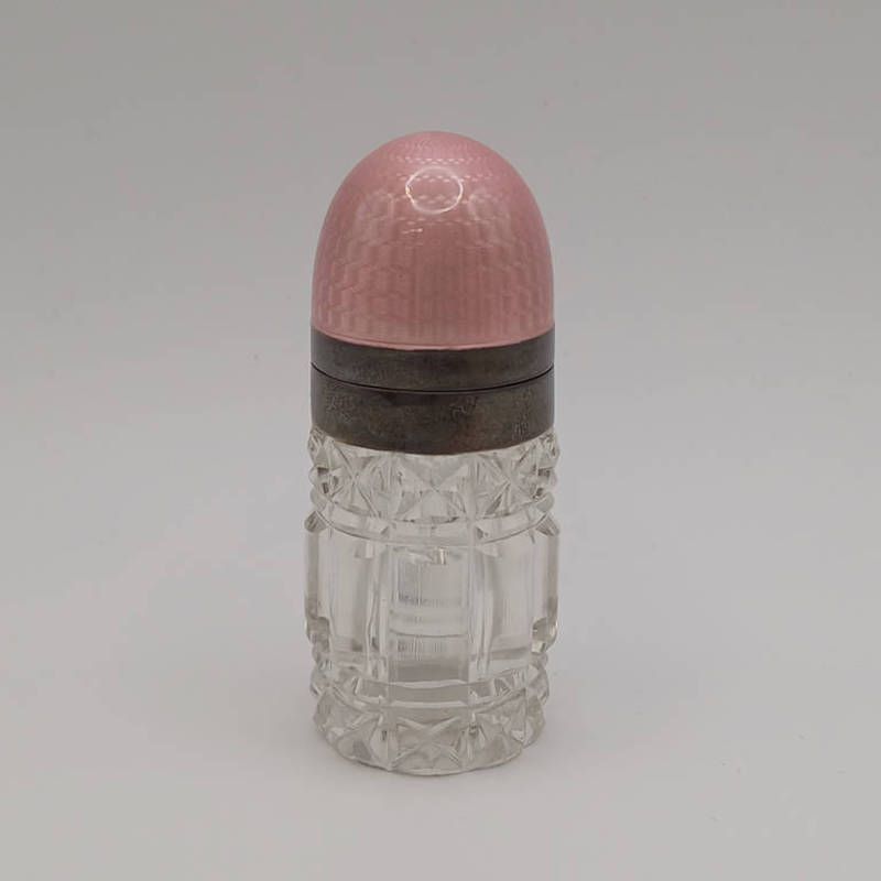 Silver & pink enamel topped cut glass scent bottle by levi salaman, birmingham 1913 - 8cm tall