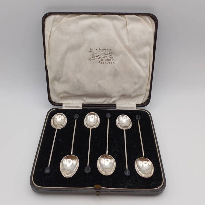 Cased set of 6 silver coffee bean spoons, 26g