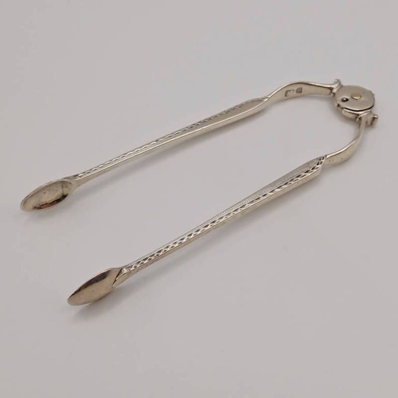 Pair of george iii bright-cut silver hinged sugar tongs mark rubbed james harmen, london 1785