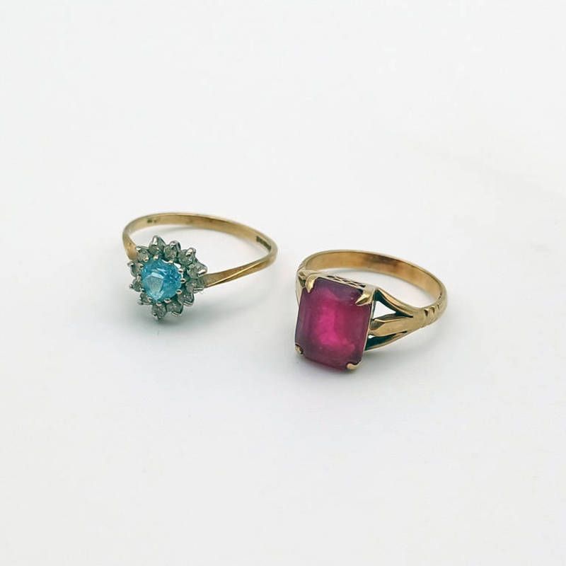 2 x 9ct gold gem set rings, 4.2g total, ring size k/m