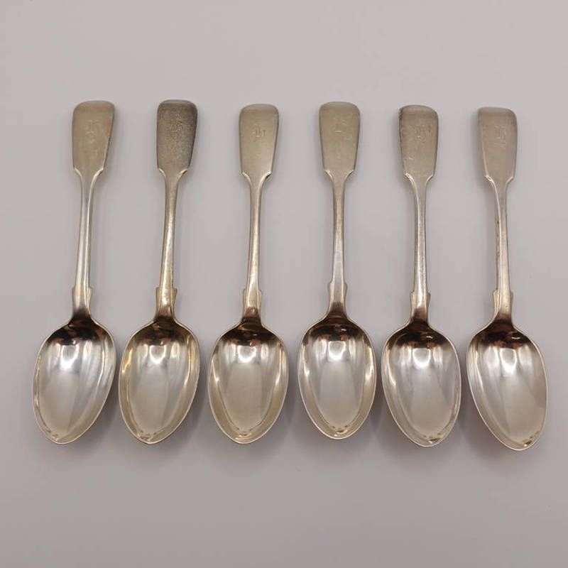 A set of 6 victorian silver fiddle pattern teaspoons by chawner & co (george william adams), london 1872. 150g