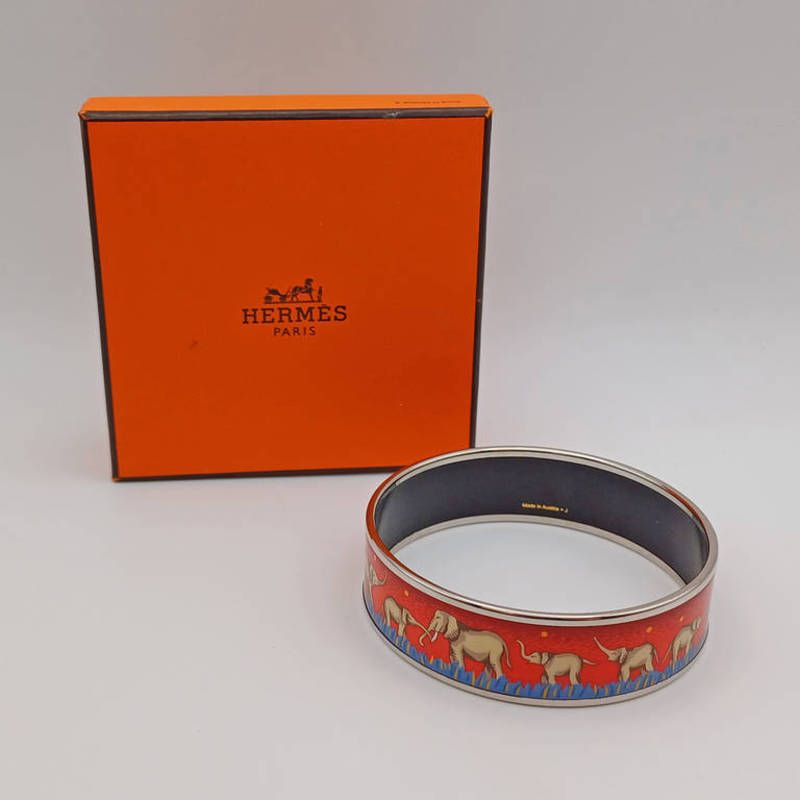 Hermes red enamel elephant bangle with box & pouch