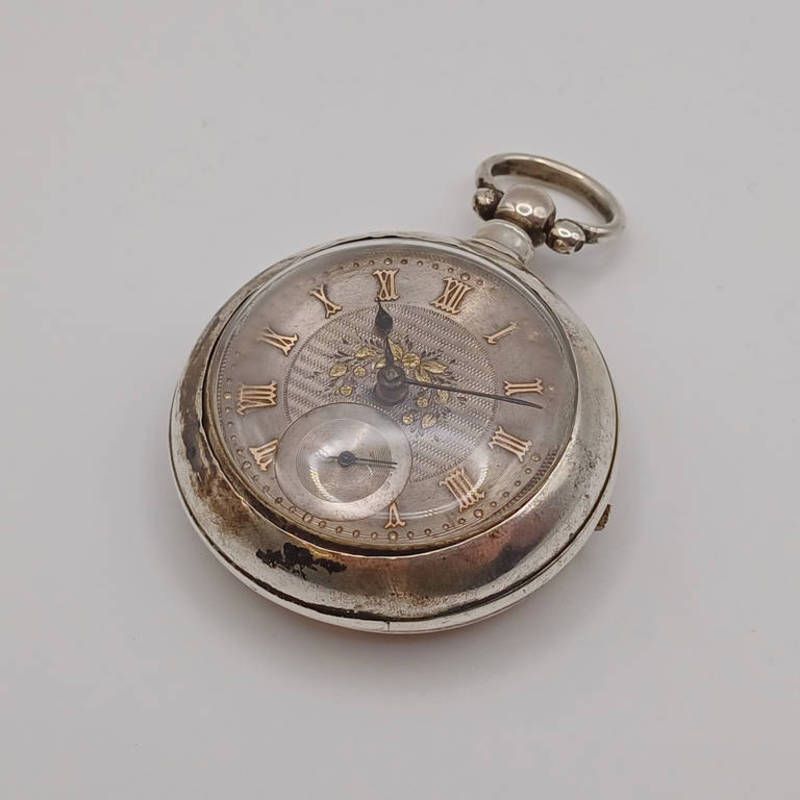 Double cased silver pocket watch with silver & gold dial, chester 1890