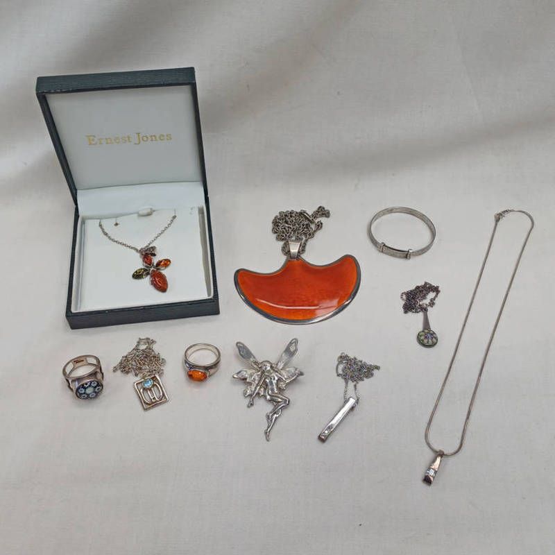 Various 925 silver jewellery etc including childs bangle, enamel pendant, scottish silver pendant etc