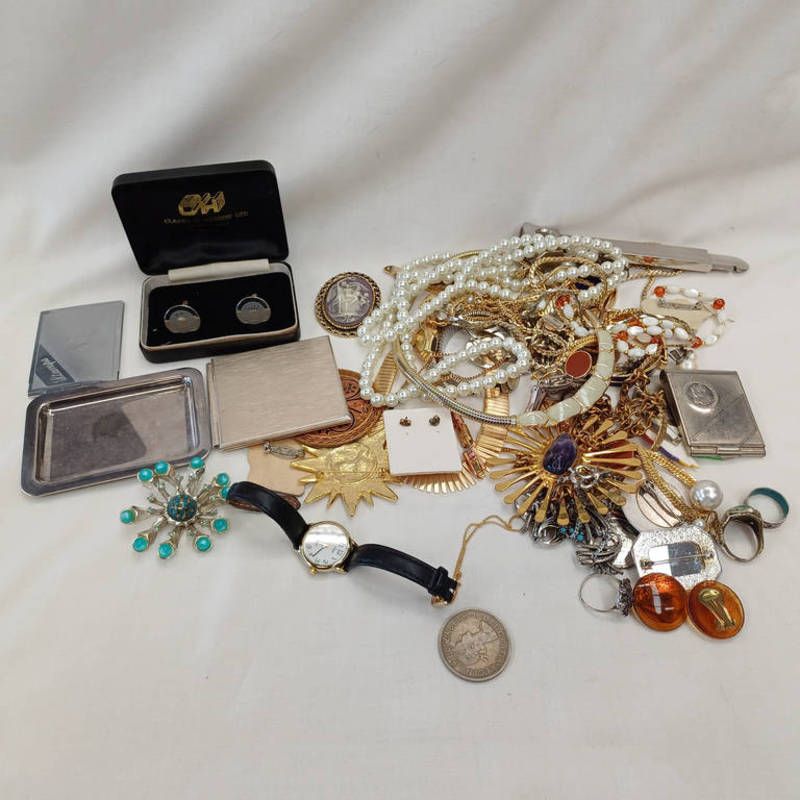 Selection of costume jewellery etc including brooches, necklace etc