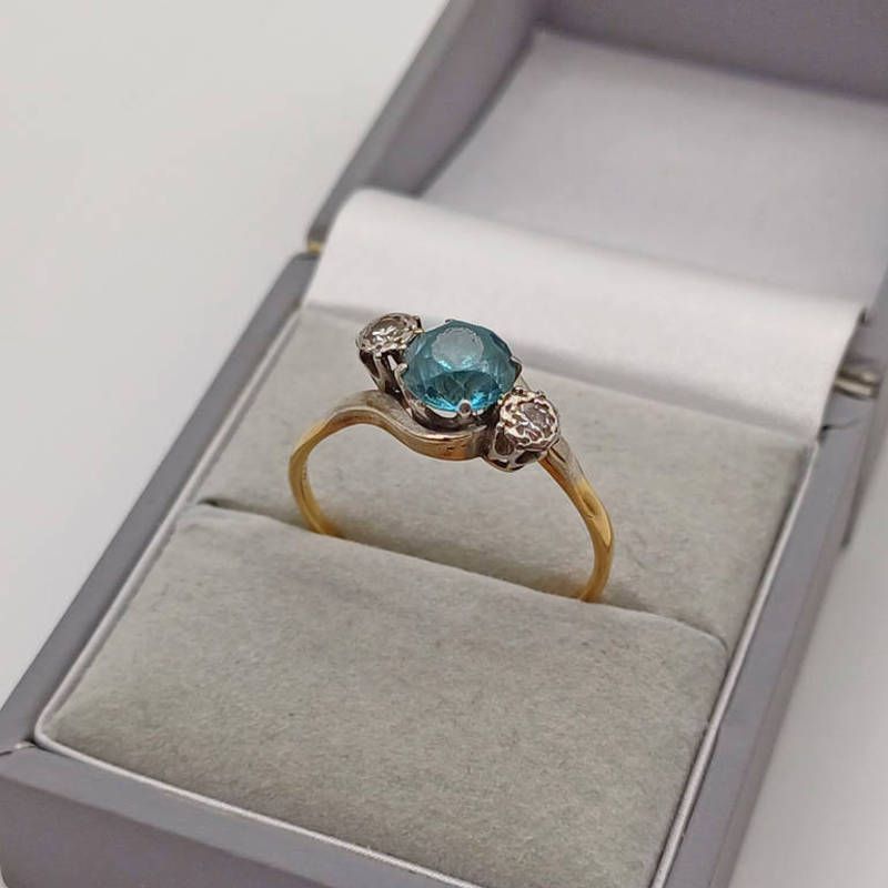 18ct gold diamond & zircon 3-stone twist ring - 3.1g, ring size t 1/2