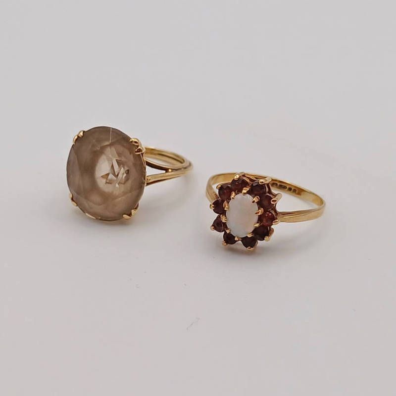 2 x 9ct gold gem set rings, 6.7g, ring size l & o