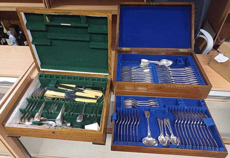 Oak cased canteen of silver plated cutlery & an art deco oak canteen of cutlery