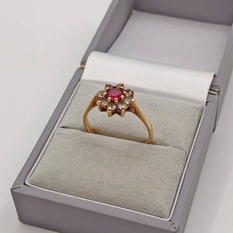 9ct gold diamond & gem set cluster ring - 2.1g, ring size n & early...