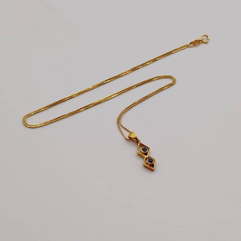 Gold sapphire set pendant on a 18k gold chain - 3g total weight