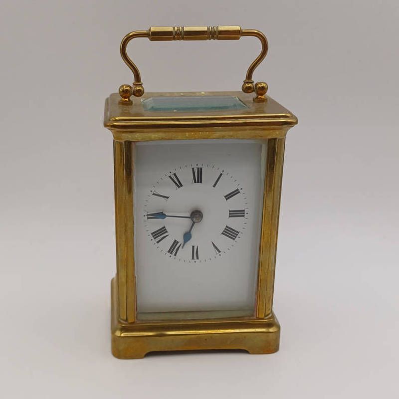 Oval gilt carriage clock - 8 cm tall excluding handle