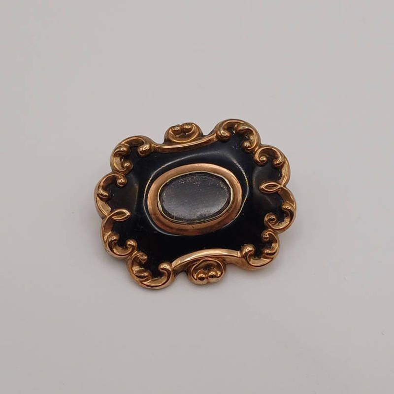 19th century gold & enamel scroll mourning brooch, 3.5cm long