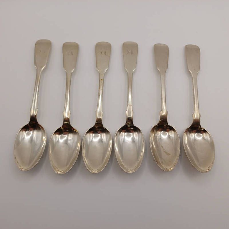 6 victorian scottish silver fiddle pattern teaspoons to include a set of 4 by thomas cooper, edinburgh 1860. 111 g