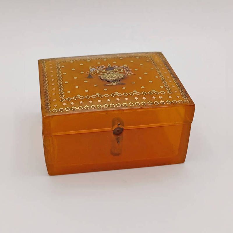 Georgian blonde tortoiseshell box with gold pique work decoration - 7cm wide