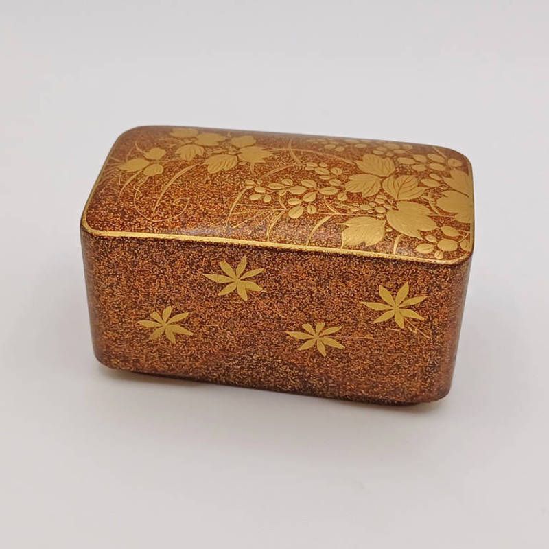 19th century japanese lacquer box & cover decorated with leaves - 6cm long