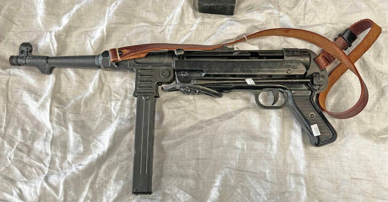 Denix replica mp40 with stick mag and leather sling *please note you must have a valid membership to a re-enactment / military vehicle group or other organisations listed in the condition report. buyer must be over the age of 18 with proof of i.d. - shipping is not available through taylors auction rooms ltd for this item