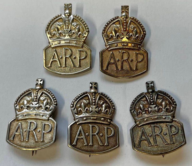 5 hallmarked silver arp badges