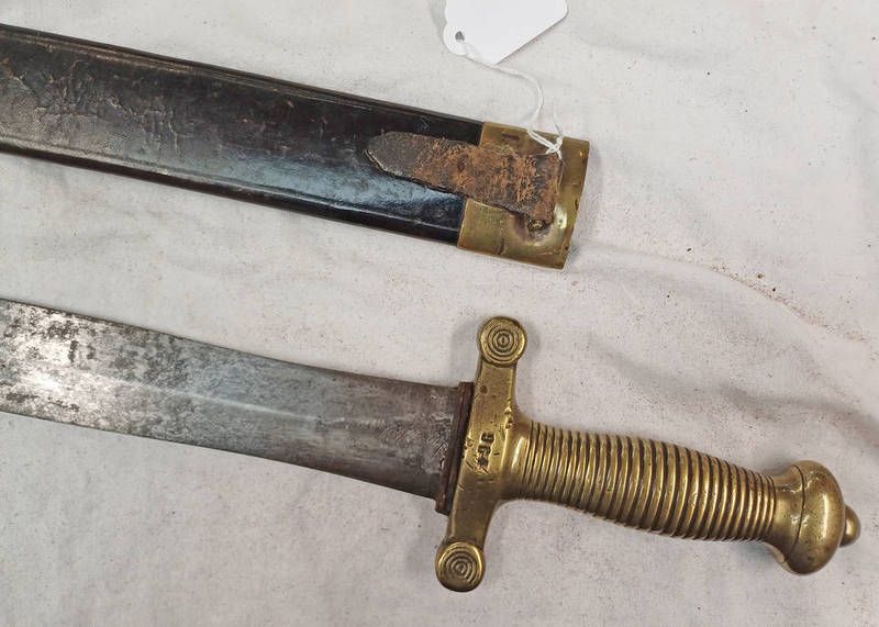 French m1831 artillery sidearm with 48 cm long double edged steel blade with markings, characteristic...
