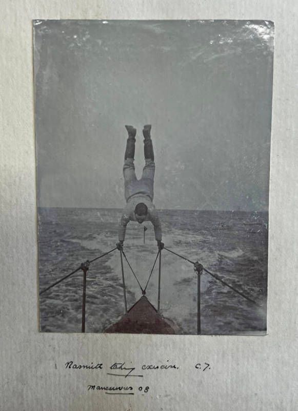 Pre ww1 british submarine and naval photograph album relating to lieutenant commander kenneth james duff-dunbar, dso, several black and white photographs to include scenes titled - torpedoes, submarine a6, the porte and pirie glider portsdown hill 09, a4 nov 1st - july 1910, submarine c31, boats at torquay, blockhouse creek june 1911, c33 diving, royal review at waymouth may 1912, officers of hazard 1912, officers and crew of submarine c31, all comers race 1912, hoisting in torpedoes, going into rosyth, hms good hope etc.
