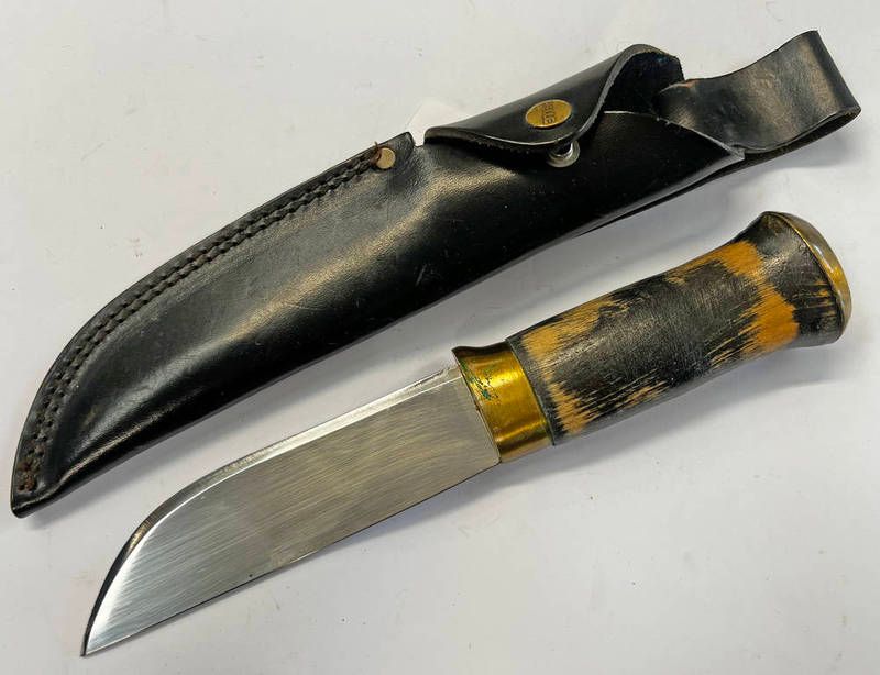 Helle norway hunting knife with 14cm long blade in scabbard
