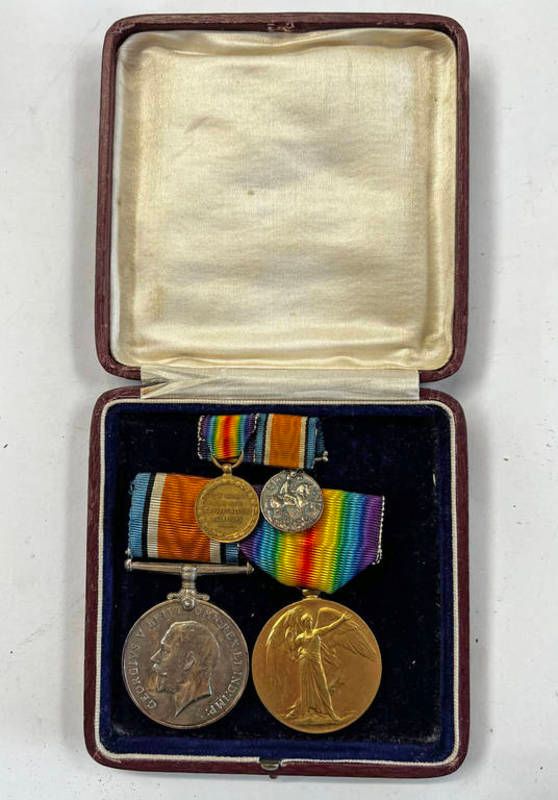 Pair of ww1 medals awarded to 2nd lieutenant thomas abro nubar bent of the royal engineers with minatures in case