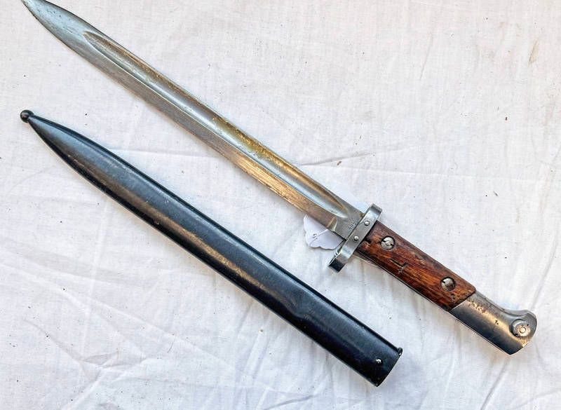 Czech vz-24 knife bayonet with 30 cm long blade marked cs2 a with its wood grip and steel scabbard with markings