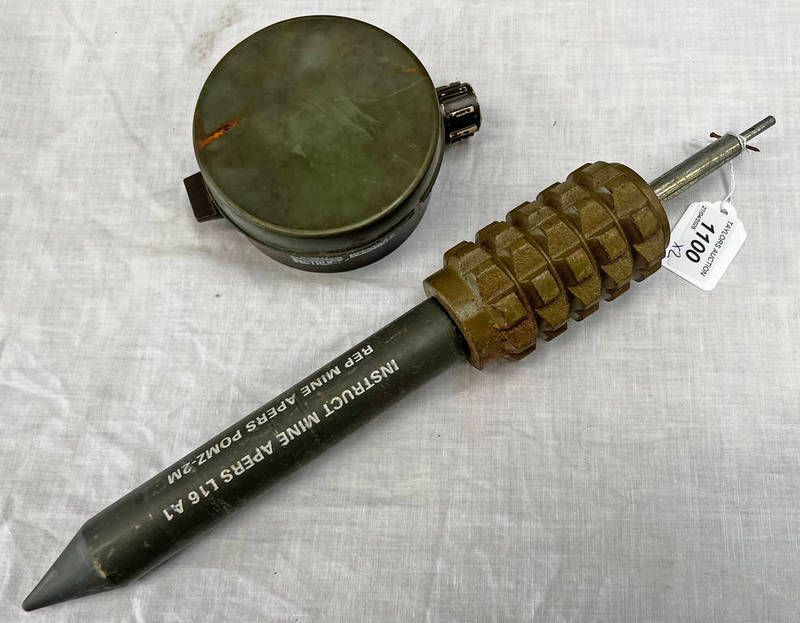 Inert russian pomz - zm anti personnel stake mounted land mine and a british l13a1fzd pressure activated anti personal mine --2-