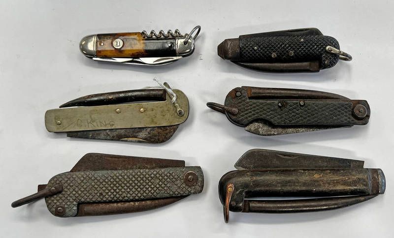 5 ww2 period clasp knives with various markings and one other pocket knife -6-