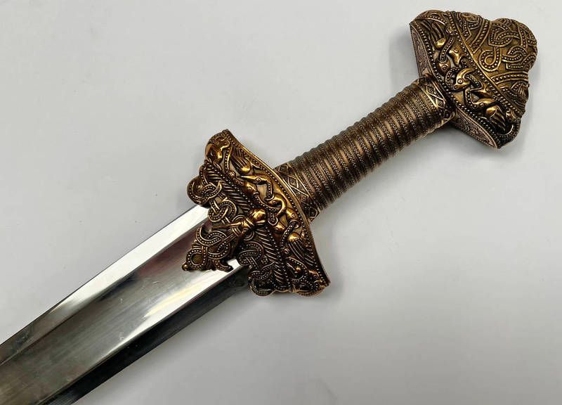 Replica / fantasy viking eric the red sword with 75 cm long blade and heavily decorated elaborate hilt, 95 cm long overall